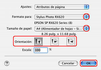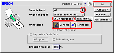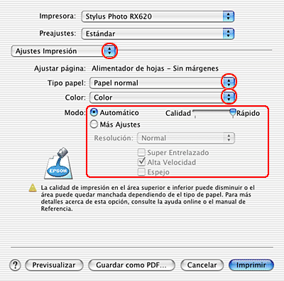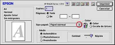 Seleccione Stylus Photo RX620 como el ajuste de Impresora.