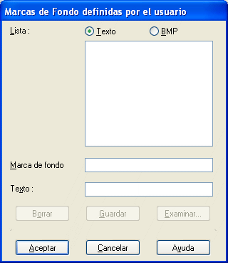 Puede añadir a la lista Marca de fondo sus propias marcas de fondo basadas en texto o en imagen.