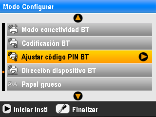 Si ha seleccionado Apareado como el Modo conectividad BT o ha activado el ajuste Codificación BT, es necesario escribir la contraseña en todo dispositivo preparado para Bluetooth para que pueda comunicarse e imprimir con este producto.