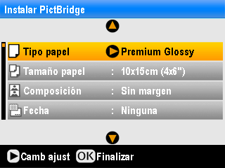 Revise los ajustes y pulse el botón OK de la impresora. En la pantalla LCD aparecerá de nuevo el menú Configurar.