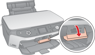 Compruebe que el indicador luminoso Tarjeta memoria esté apagado y que no haya tarjetas en ninguna ranura. Después, inserte la tarjeta en la ranura correspondiente.