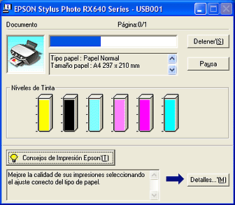 • En cuanto inicie un trabajo de impresión, aparecerá el contador de avance. Puede comprobar la cantidad de tinta restante en esta ventana.