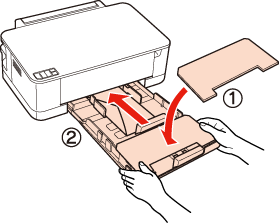 Kui paberikassett on hoiustamisasendis, siis laiendage paberikassetti joonisel näidatud viisil.