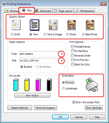 Napsauta Main (Yleiset) -välilehteä ja valitse yksi seuraavista Quality (Laatu) -asetuksista: