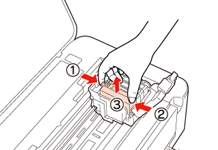 -painiketta uudellaan, paina värikasettia alaspäin, kunnes se napsahtaa paikalleen, ja sulje sitten värikasettien kansi tiukasti.