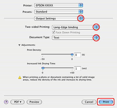 Mac OS X tukee vain tavallista automaattista 2-sided printing (Kaksipuolinen tulostus) -toimintoa. Tämä toiminto ei ehkä ole käytettävissä joissakin malleissa.