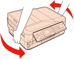 Tulostin on sijoitettu tasaiselle ja vakaalle alustalle, joka on kaikissa suunnissa tulostinta suurempi. Tulostin ei toimi oikein, jos se on vinossa.