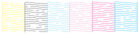 Vertaa testisivun tulostuslaatua alla olevaan malliin. Jos tulostuslaadussa ei ole esimerkiksi rakoina tai testikuviosta puuttuvina osina ilmeneviä puutteita, tulostuspää on kunnossa.