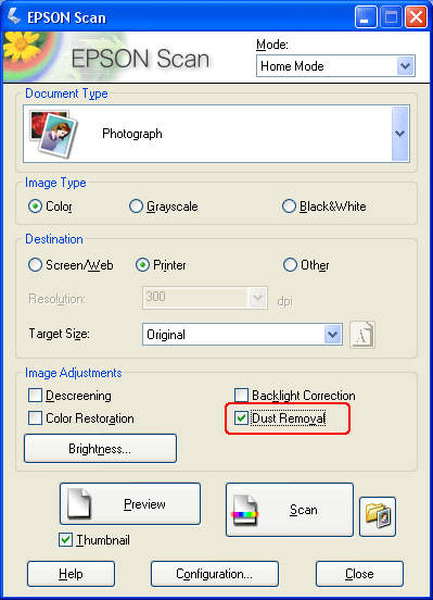 Poista pölyjäljet alkuperäisistä Epson Scanilla seuraavasti.