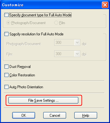 Napsauta File Save Settings (Tiedoston tallennusasetukset) -painiketta.
