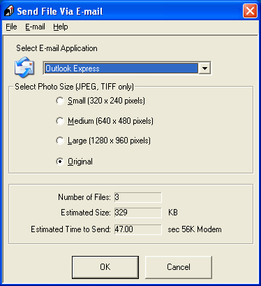 Kun skannaus on valmis, näytölle avautuu Send File Via E-mail (Lähetä tiedosto sähköpostitse) -valintaikkuna.