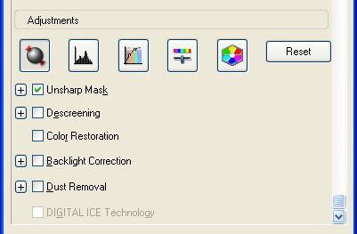 Muista napsauttaa säädettävää kuvaa tai alueen valintakehystä ennen säätöjen suorittamista. Professional Mode (Professional-tila) sinun on ehkä lisäksi siirryttävä näytöllä Epson Scan -pääikkunan alareunassa sijaitsevaan Adjustments (Säädöt) -kohtaan.