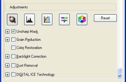 Muista napsauttaa säädettävää kuvaa tai alueen valintakehystä ennen säätöjen suorittamista. Professional Mode (Professional-tila) sinun on ehkä lisäksi siirryttävä näytöllä Epson Scan -pääikkunan alareunassa sijaitsevaan Adjustments (Säädöt) -kohtaan.