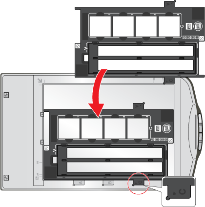 Jos haluat asettaa filmin laitteeseen skannausta varten, katso Filmin asettaminen telineeseen.