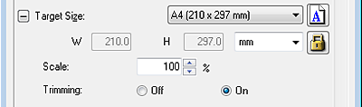 Jos haluat muuttaa kuvan rajaustapaa, kytke Trimming (Rajaus) päälle tai pois päältä. Katso lisätietoja Epson Scanin ohjeesta.