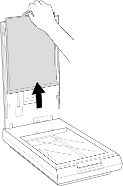 Avaa skannerin kansi ja irrota asiakirja-alusta vetämällä sitä varovasti ylöspäin.