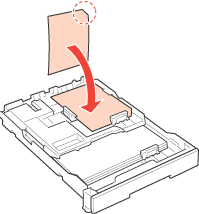 Kun asetat valokuvatarra-arkin, aseta se kuvapuoli alaspäin alla olevan kuvan mukaan. Älä käytä latauksen tukiarkkia, joka kuului valokuvatarra-arkkien toimitukseen.