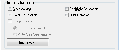 Tämä asetus on käytettävissä seuraavin ehdoin: - kun Image Type (Kuvatyyppi) on asetettu arvoon Color (Väri) - kun Image Type (Kuvatyyppi) on asetettu arvoon Grayscale (Harmaasävy) - kun valitset Magazine (Aikakauslehti) Document Type (Asiakirjan tyyppi)-asetuksena ja Image Type (Kuvatyyppi) on asetettu arvoon Black&White (Mustavalkoinen) ja Image Option (Kuvavaihtoehto) ja Auto Area Segmentation (Autom alueen jako)ovat valittuna - kun valitset Newspaper (Sanomalehti) Document Type (Asiakirjan tyyppi)-asetuksena ja Image Type (Kuvatyyppi) on asetettu arvoon Black&White (Mustavalkoinen) ja Image Option (Kuvavaihtoehto) ja Auto Area Segmentation (Autom alueen jako)ovat valittuna - kun valitset Text/Line Art (Teksti/viivapiirros) Document Type (Asiakirjan tyyppi)-asetuksena ja Image Type (Kuvatyyppi) on asetettu arvoon Black&White (Mustavalkoinen) ja Image Option (Kuvavaihtoehto) ja Auto Area Segmentation (Autom alueen jako)ovat valittuna