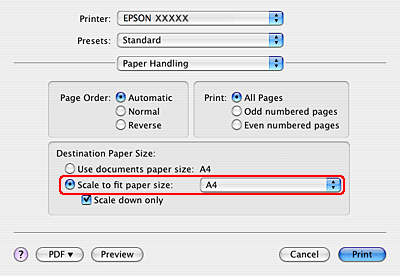 Valitse Scale to fit paper size (Sovita vastaamaan paperikokoa).