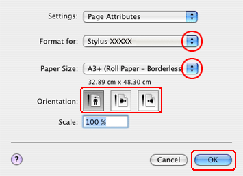 Valitse oikea rullapaperikoko Paper Size (Paperikoko) -asetukseksi.