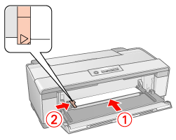 Aseta paksu paperi seuraavien ohjeiden mukaan. Jos asetat paksun paperin muulla tavalla (esimerkiksi siten, että sammutat ja käynnistät laitteen lisättyäsi paksua paperia), tulostin saattaa vahingoittua.