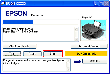 Paina Stop/Clear-painiketta ja peruuta käynnissä oleva tulostustyö.