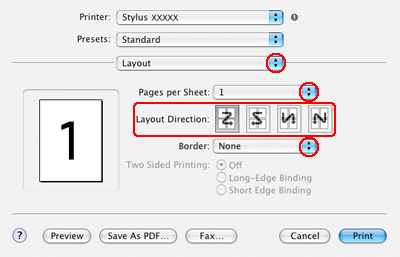 Valitse seuraavista vaihtoehdoista asetukset Pages Per Sheet (Sivua arkille)-tulostukselle: