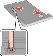 Siirrä reunaohjainta oikealle. Varmista, että paperi mahtuu vasemman reunaohjaimen sisäpuolella olevan nuolimerkin