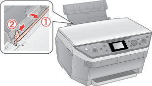 Purista painiketta ja liu'uta paperinohjaimet siten, että ne pitävät asettamasi paperin paikallaan.