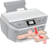 Avaa ulossyöttöalusta ja sen laajennusosa.