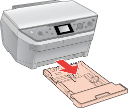 Pidä lokero litteänä, kun työnnät sen takaisin tulostimeen.