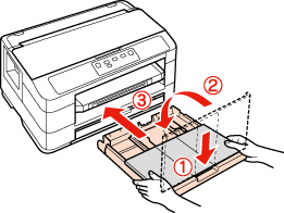 Paina kirjekuori ja läpät litteiksi ennen lataamista.