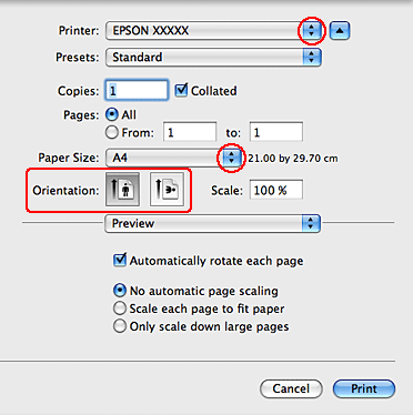 Käytettävästä sovelluksesta riippuen tämän valintaruudun kaikkia valintoja ei ehkä voida valita. Jos näin on, osoita sovelluksen File (Tiedosto) -valikossa Page Setup (Sivun asetukset) ja tee tarvittavat asetukset.