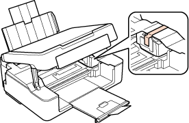 Avaa skanneriyksikkö ja varmista, että tulostuspää on perusasennossa oikealla.