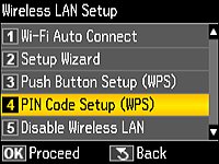 PIN Code Setup (WPS) (Config code PIN (WPS)), puis appuyez sur