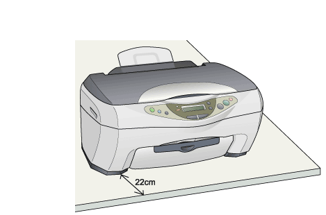 Laissez plus de 22 cm entre la base du combiné multifonction et le bord de la surface sur laquelle il est posé afin d'éviter tout risque de chute de l'appareil susceptible de provoquer des blessures.
