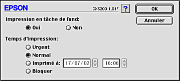 ![]() | Sélectionnez l'option Urgent, Normal, Imprimer à ou Bloquer pour l'heure d'impression. |