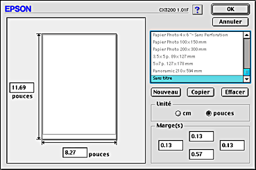 Choisissez le format de papier à utiliser. Si vous souhaitez définir une taille de papier personnalisée, reportez-vous à la section Définition d'un format de papier personnalisé. |