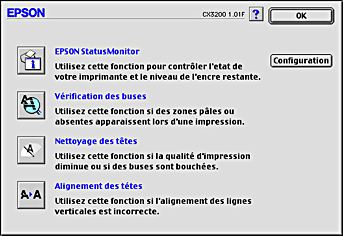 Les utilitaires d'impression EPSON vous permettent de contrôler l'état actuel du combiné multifonction et d'effectuer des opérations de maintenance à partir de votre ordinateur.