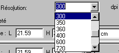 La résolution de l'opération de numérisation en cours peut être modifiée en sélectionnant une résolution ou en saisissant une valeur. Cette nouvelle valeur prend le pas sur celle sélectionnée dans la boîte de dialogue Destination.