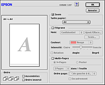 Sur Macintosh, dans la zone de liste Taille papier du menu Disposition, sélectionnez le format de papier correspondant au papier que vous avez chargé dans le combiné multifonction.