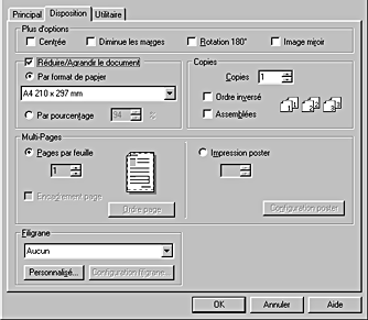 Sous Windows, cochez la case Réduire/Agrandir le document et sélectionnez l'option Par format de papier dans le menu Disposition.