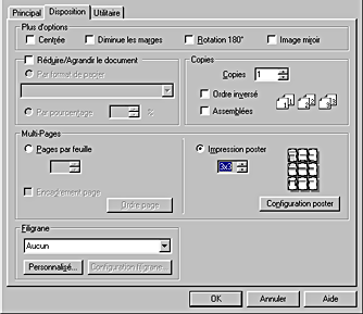 Réglez les paramètres suivants pour l'impression du poster :