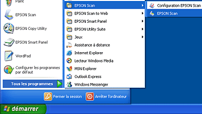 Selon l'application utilisée, il se peut que vous ne puissiez pas lancer EPSON Scan comme indiqué ci-après.