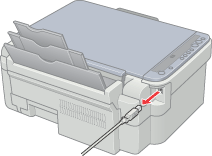 ![]() | Déconnectez le câble USB du combiné multifonction comme illustré ci-dessous. |