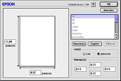 Vous pouvez définir un format de papier personnalisé et l'ajouter à la liste.