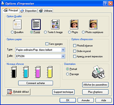 Cliquez sur OK pour revenir à la zone de dialogue Format d'impression.