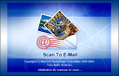 Cette application vous permet de numériser une image et de l'envoyer en pièce jointe à un courrier électronique. Lorsque vous lancez cette application, l'écran suivant s'affiche et l'image est numérisée à partir de EPSON Scan.