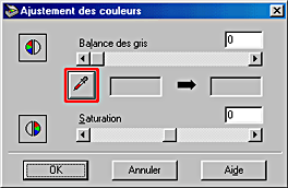 Dans la boîte de dialogue Ajustement des couleurs, cliquez sur le bouton Pipette situé sous l'option Balance des gris.