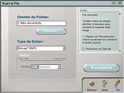 Utilisez cette application pour numériser, convertir puis enregistrer l'image numérisée dans un dossier spécifique. Lorsque vous lancez cette application, une image est numérisée à partir de EPSON TWAIN et affichée dans la boîte de dialogue Verify Assistant. Cliquez sur Terminer ; la boîte de dialogue ci-dessous s'affiche. Pour plus de détails, reportez-vous à la documentation d'EPSON Smart Panel.